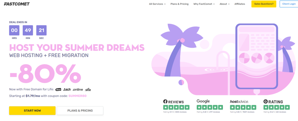 Click here to visit FastComet. As soon you are there click on the START NOW button.
